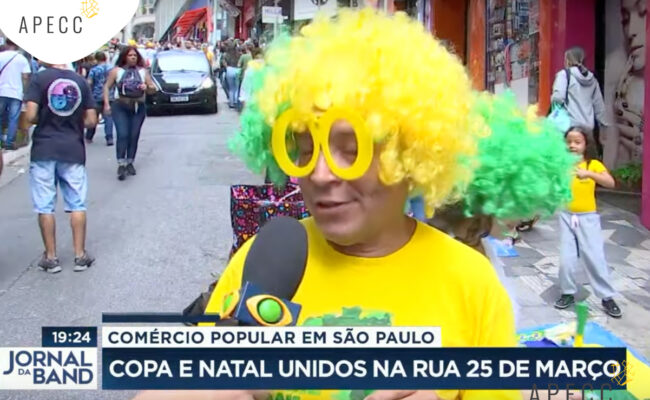 Em reportagem exibida pelo Jornal da Band esta semana, o comércio da região do Circuito das Compras para a Copa do Mundo foi o destaque. O aumento das vendas nesta época do ano já era esperado e a Copa soma-se ao Natal para impulsionar o comércio na região. Confira na íntegra