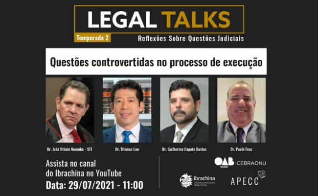 O ministro do Supremo Tribunal de Justiça (STJ), João Otávio Noronha, debaterá as “Questões controvertidas no processo de execução” na 19ª edição do Legal Talks. A transmissão acontecerá na quinta-feira (29), a partir das 11h, no canal do YouTube do Instituto Sociocultural Brasil-China (Ibrachina). O ministro conversa com os coordenadores do programa: o Dr. Guilherme […]