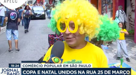 Em reportagem exibida pelo Jornal da Band esta semana, o comércio da região do Circuito das Compras para a Copa do Mundo foi o destaque. O aumento das vendas nesta época do ano já era esperado e a Copa soma-se ao Natal para impulsionar o comércio na região. Confira na íntegra